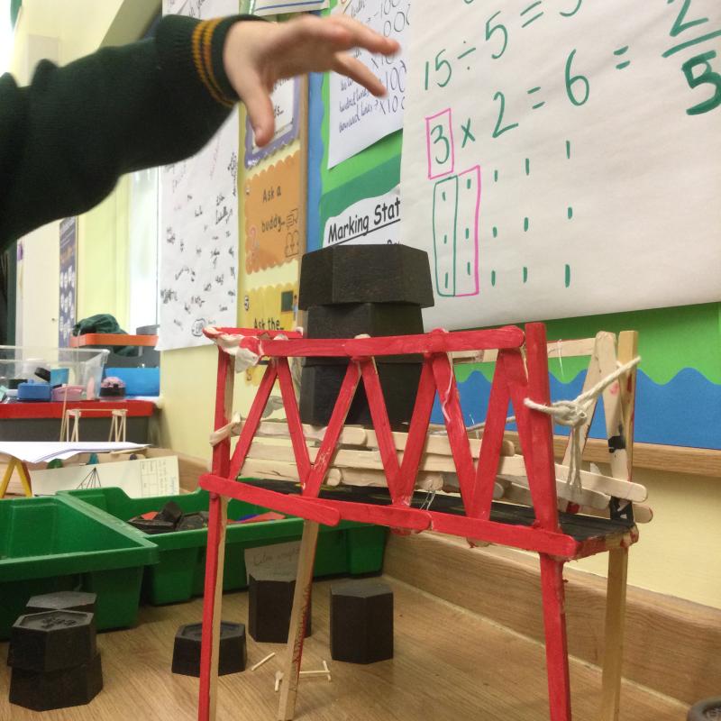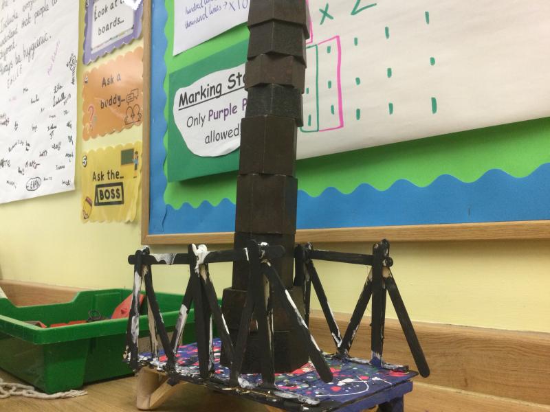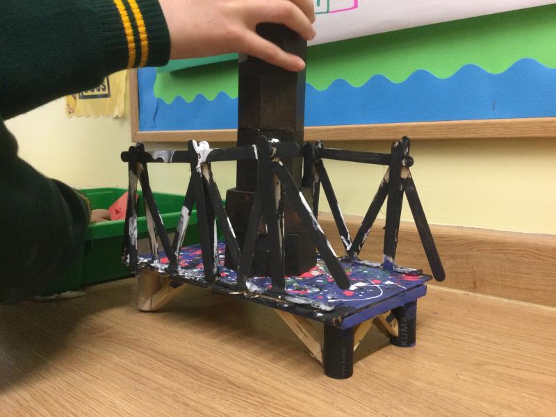 Our DT week project was to build a bridge that was no longer than 30cm long but had to be at least 7cm wide. It needed to be raised off the ground, but there was no limit to this, and it needed to be able to hold a ball on top without it rolling away. All children achieved the object within these parameters and we had particular fun testing them out until they were destroyed. A huge well done to the winning team: Asaiah, Evan and Isla. Their bridge held strong even with myself and another child stood upon it at the same time!