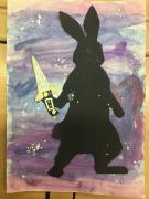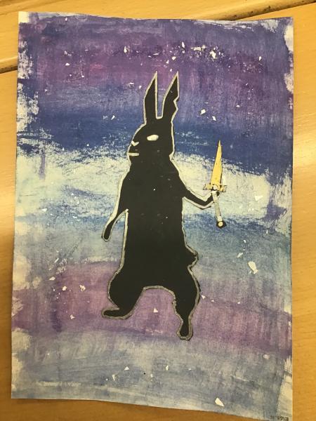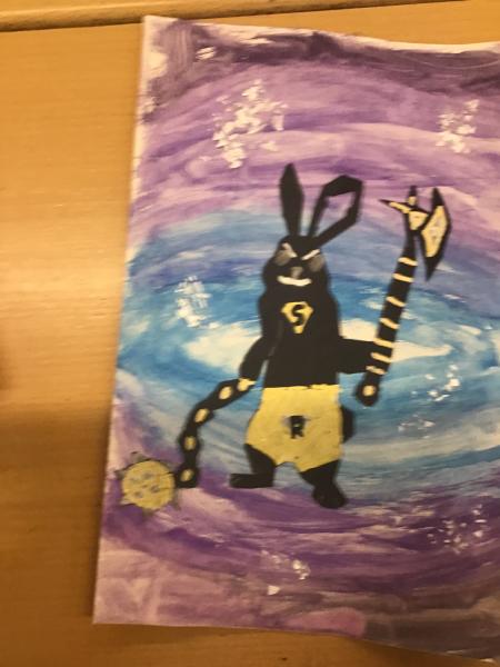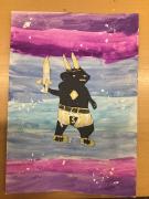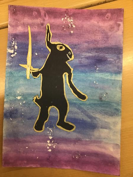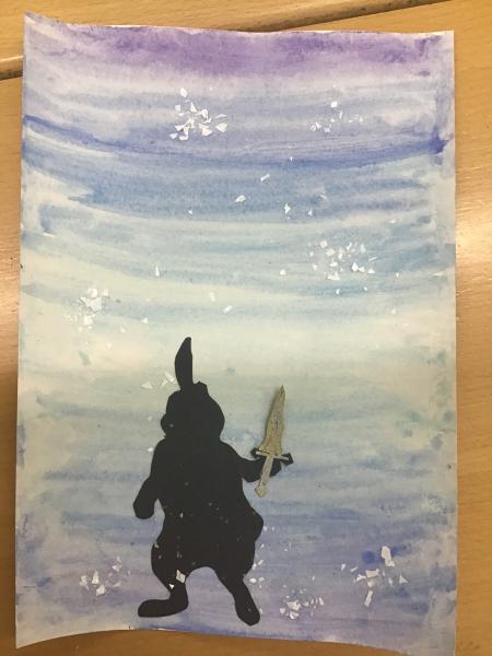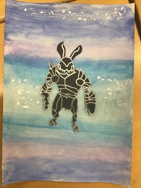 During World Book Day, we created some front covers for one of the books we have read in school called 'Podkin One-Ear' by Kieran Larwood. We used a watercolour background in blues and purples and then created a silhouette of one of the characters. To finish, we added some metallics to make the armour/swords pop with a sprinkle of fake snow to match the setting. We think they look great!