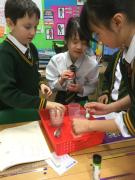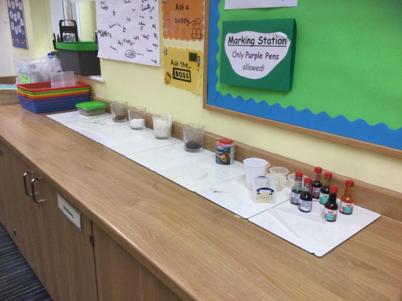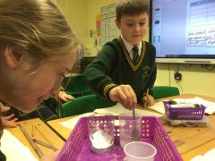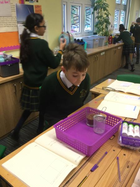 This week, Year 5 have been experimenting with different solutes to test whether they are soluble or insoluble. We tested rice, tea leaves, coffee, flour, sugar, salt, sand and bicarbonate soda. We kept a fair test by using the same amount of solute, solvent and time for each material.