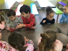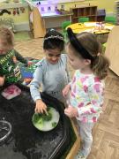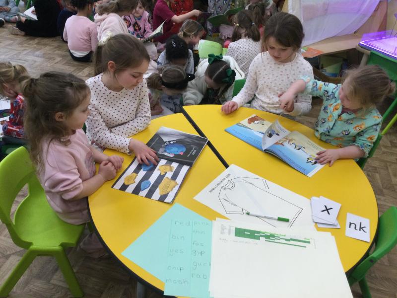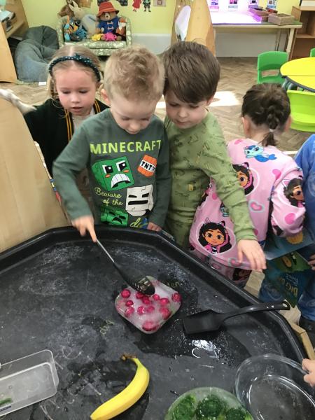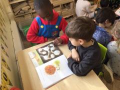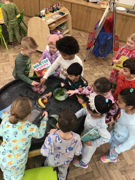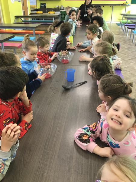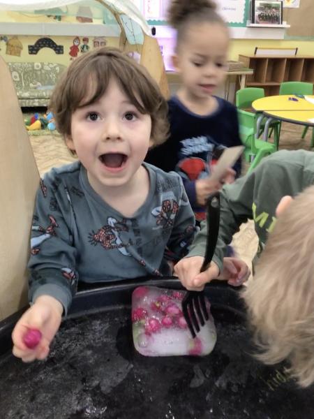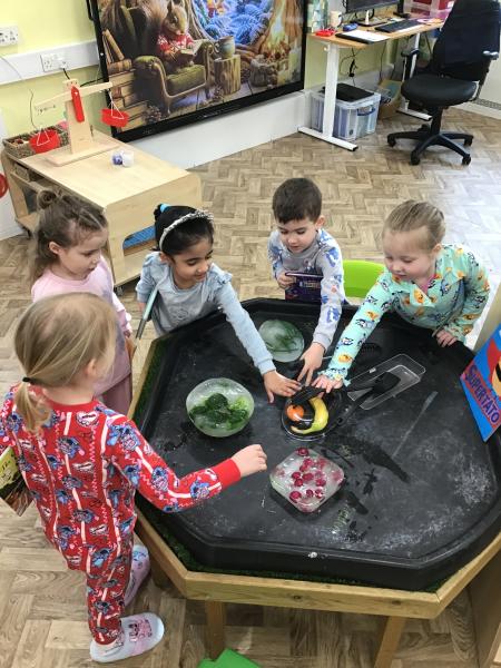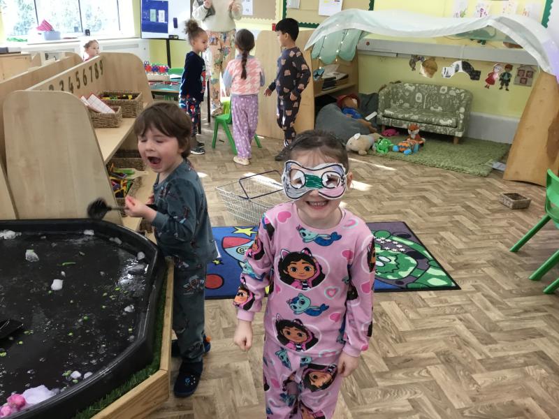 When we came into the classroom this morning, we were very surprised to see lots of frozen vegetables! After reading the story Supertato, we realised that the Evil Pea must have been in our classroom. The children designed posters and created traps to try to catch him. Just like in the story, we even made some jelly to try and trap the Evil Pea! While making the jelly, we practised following instructions, working together and talking about the different steps involved in the process. In the afternoon, we had a special visit from some of the older children who came to read stories with us. They also helped us to make bookmarks and reading masks. What an exciting day!