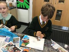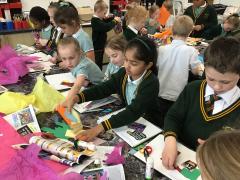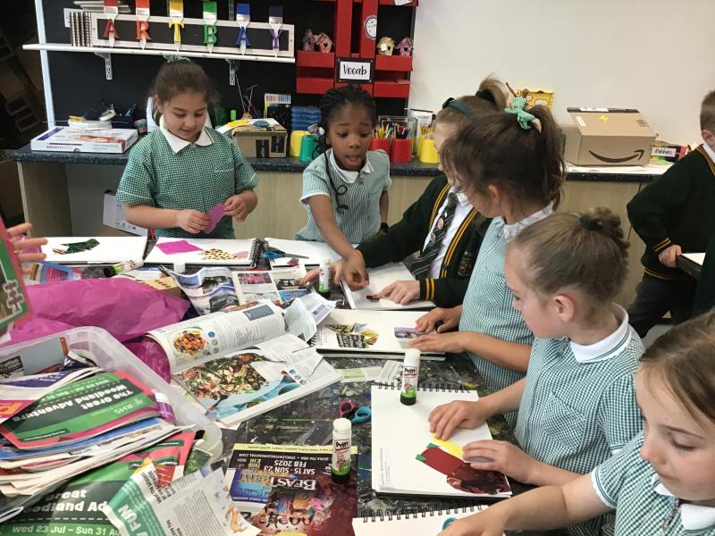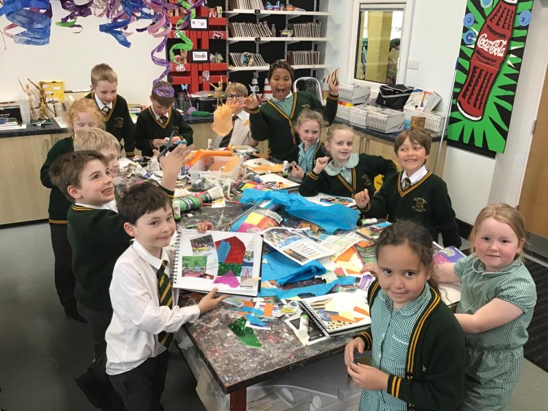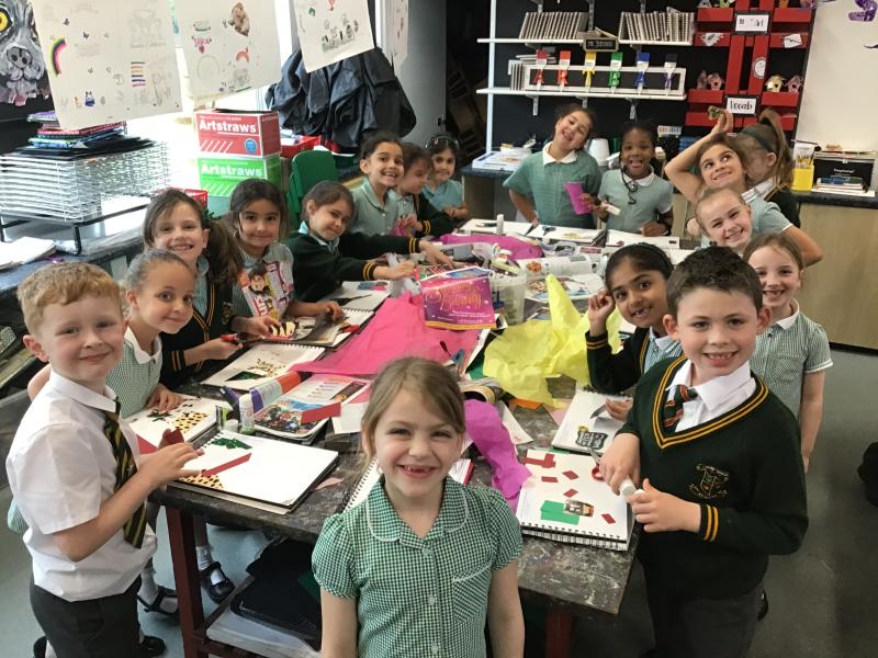 We are in the Art Bay this afternoon 🎨🖌️🖼️ Our learning this half term is inspired by the artist Chila Burman. Today we are practising overlapping different materials to create a colourful collage.